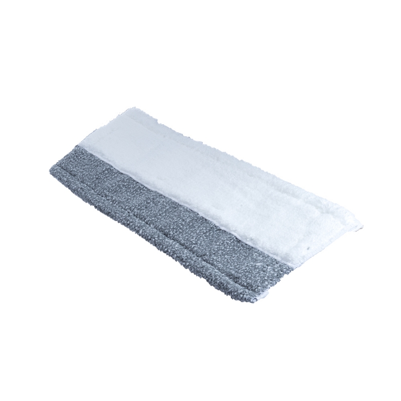 Моп состоит из двух материалов – универсальной белой микрофибры, имеющей сверхтонкие волокна, и микрофибры щеточного типа, имеющей грубые волокна.