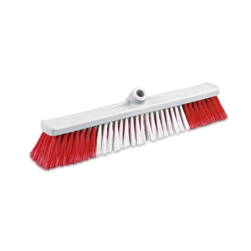 Щетка для подметания с жесткой щетиной. Отверстие с резьбой под углом 45 градусов под ручку. Щетина: жесткая. Материал: основа - пластик, щетина – полипропилен.