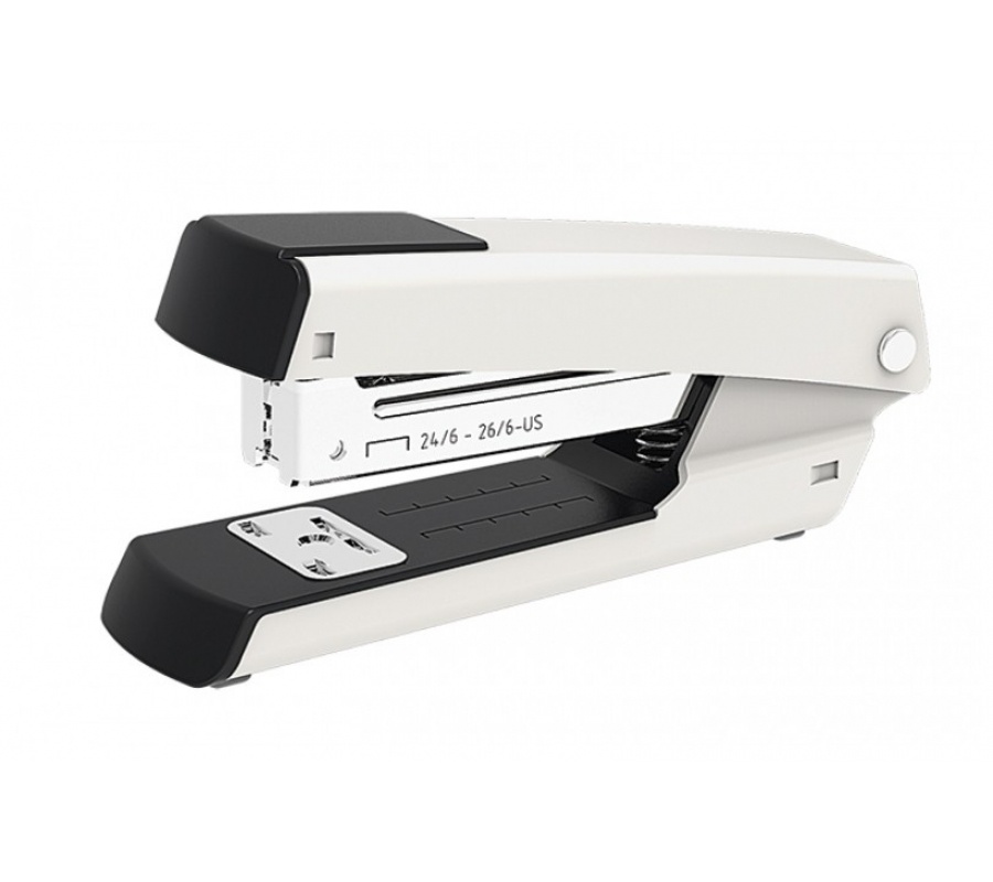 Полностью металлический степлер с полной загрузкой скоб. Механизм ускоренной загрузки скоб, полностью металлические детали. Прорезиненная прокладка для антискольжения. Механизм временного сшивания. Встроенный скоборасшиватель и индикатор загрузки скобы. Количество пробиваемых листов плотностью 80г/м-30 шт. Загрузка: 50 X 24/6, 100 X 26/6. Степлер с функциями постоянного и временного сшивания.