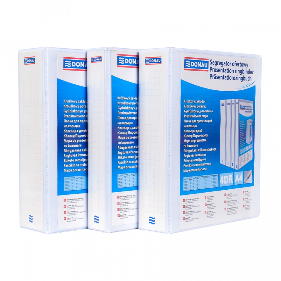 Папка на 4 кольцах "Panorama" изготовлена из картона, обтянутого полипропилетом, и подходит для хранения документов А4. Широкий корешок позволит вместить в папку все необходимые документы. Кольцевой механизм крепления значительно сокращает время на поиск нужной бумаги. На внешней и внутренней стороне имеются прозрачные карманы для персонализации и хранения заметок. Диаметр колец – 30 мм, 40 мм, 50 мм, 65 мм. Цвет папки – белый.