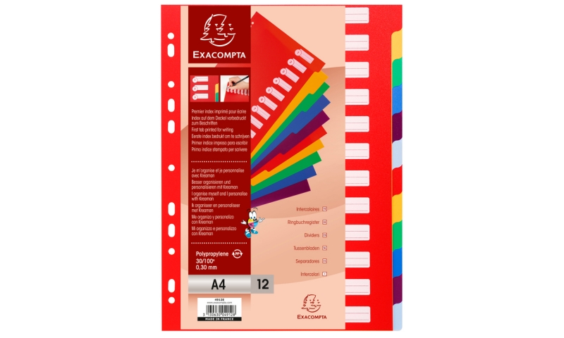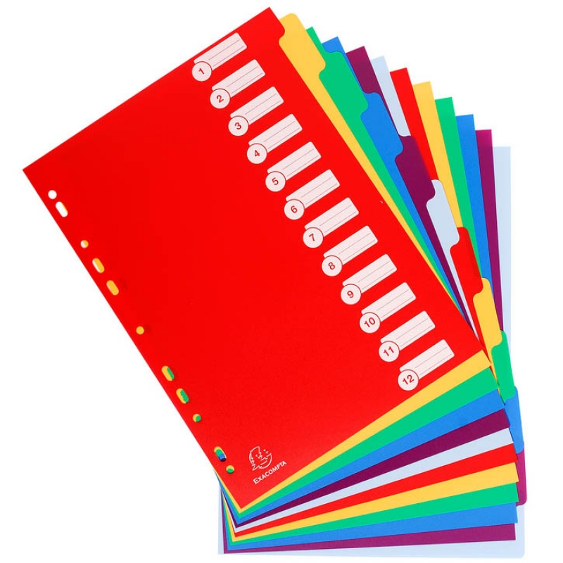 Разделитель Exacompta представлен в удобном формате А4. Разделитель Exacompta выполнен из прочного полипропилена толщиной 350 микрон. Количество делений равняется двенадцати. Яркая цветовая гамма.