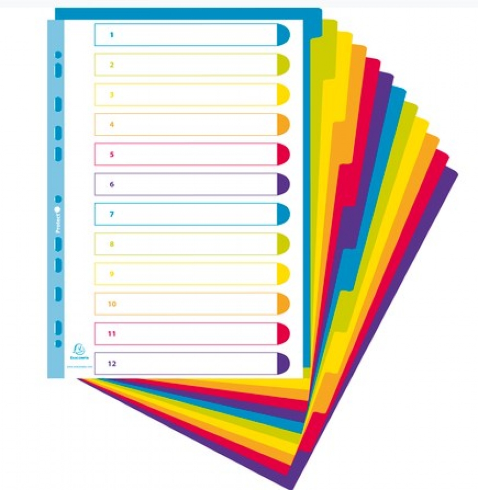 Разделитель на 12 делений выполнен из плотного полипропилена. Представлен в увеличенном формате A4 Maxi (24,5x29,7 cm) благодаря чему отлично подойдет для использования среди документов в файлах. Яркие сочные цвета.