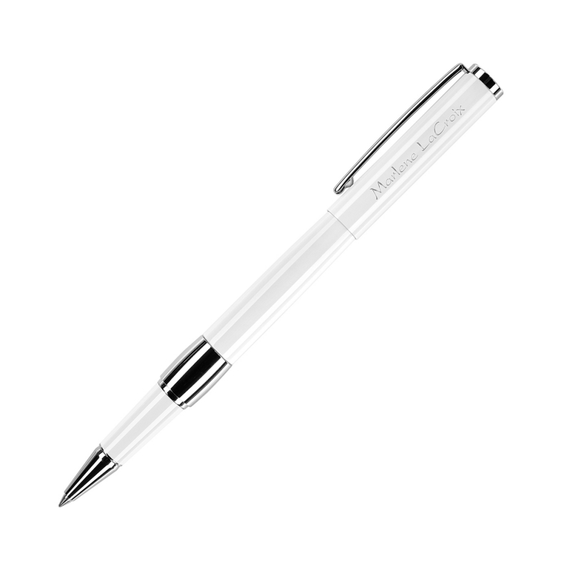 Ручка роллер "Image White Line" со съемным колпачком. Металлический корпус с матово-хромированными деталями, покрыт слоем высококачественного лака. Корпус выполнен из высококачественного металла и покрыт блестящим лаком. Надежный невысыхающий стержень-роллер с синей пастой с металлическим наконечником. Ширина штриха 0,5 мм. Подходит под нанесение логотипа гравировкой.