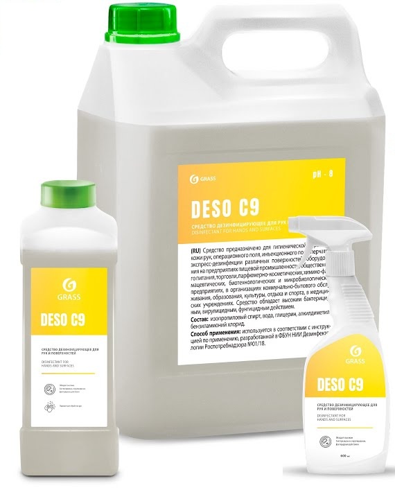 DESO C9 - предназначено для гигиенической обработки кожи рук, операционного поля, инъекционного поля, перчаток, экспресс-дезинфекции различных поверхностей, оборудования на предприятиях пищевой промышленности, общественного питания, торговли, парфюмерно- косметических, химико-фармацевтических, биотехнологических и микробиологических предприятиях, в организациях коммунально-бытового обслуживания, образования, культуры, отдыха и спорта, в медицинских учреждениях.