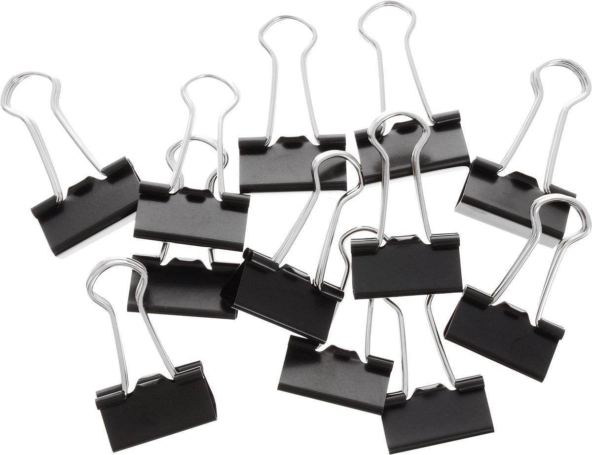Металлический зажим для бумаг надежно скрепляет документы, не повреждая их.