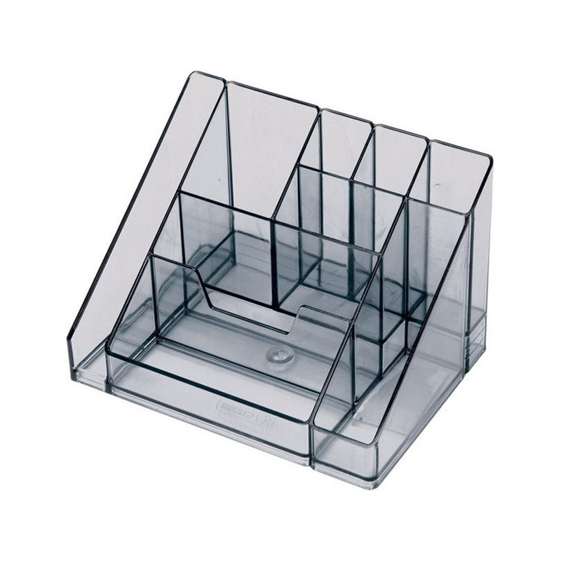 Отличается удачным сочетанием вместительности и компактности размеров, 9 отделений для канцелярских принадлежностей, визиток и листков для записей, гладкая глянцевая поверхность, прочный корпус изделия. Материал полистирол.