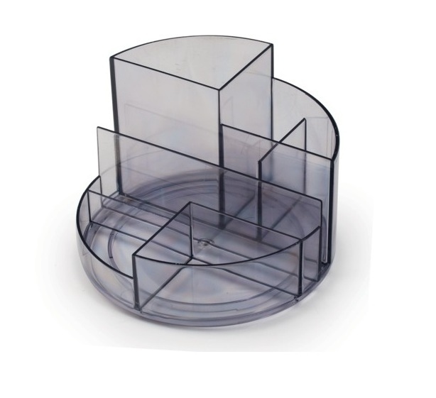 Объемные, удобно расположенные секции разной высоты, гладкая глянцевая поверхность, 6 отделений для канцелярских мелочей и пишущих принадлежностей, визиток и листков для записей, прочный корпус изделия. Материал полистирол.