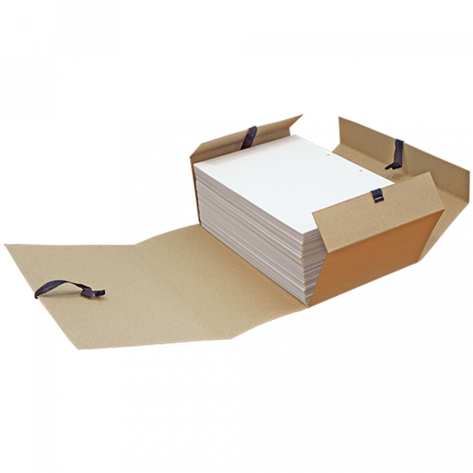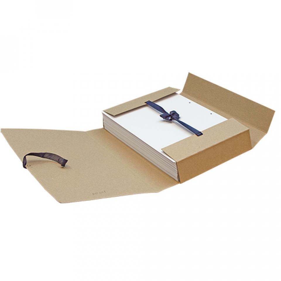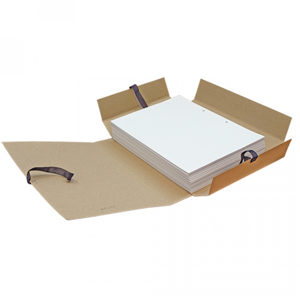 Папки на завязках изготовлены из немелованного картона повышенной плотности с различной шириной корешка от 40 до 150 мм, что позволяет в одном изделии хранить определенное количество бумаг: до 1500 листов в папке. Документы в папке ударживаются клапанами с завязками. Представлены в формате А4. Плотность картона 428 г/м2, толщина картона 0,6 мм.