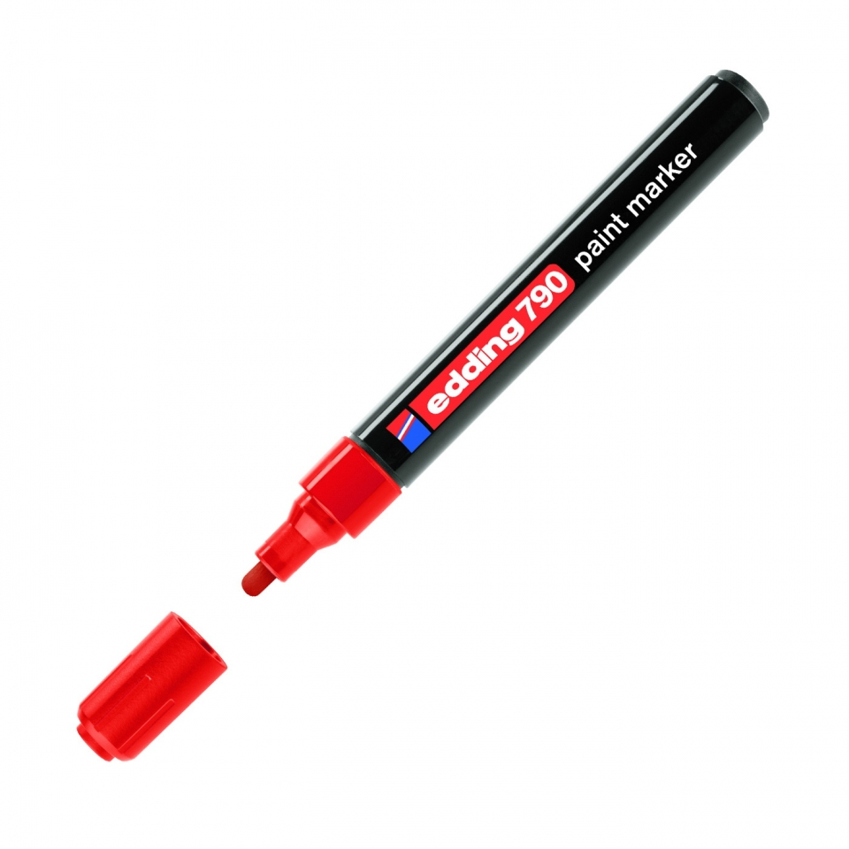 Лаковый маркер Edding 790 с круглым наконечником в металлической оправе. Сверхпокрывающая способность в маркировке любых материалов, например, металла, пластика, стекла, дерева. Идеален для использования на темных и прозрачных поверхностях. Отличный помощник в литейном деле, при сварке, ковке, в прочих видах работ по металлу, а также в машиностроении. Надписи выдерживают воздействие температуры до 400 º С. Чернила устойчивы к изопропанолу, этанолу и машинному маслу.